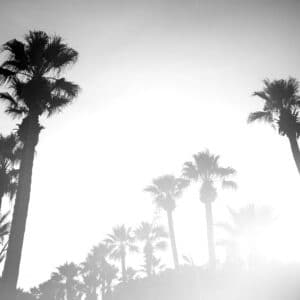Palm trees against the sunset.